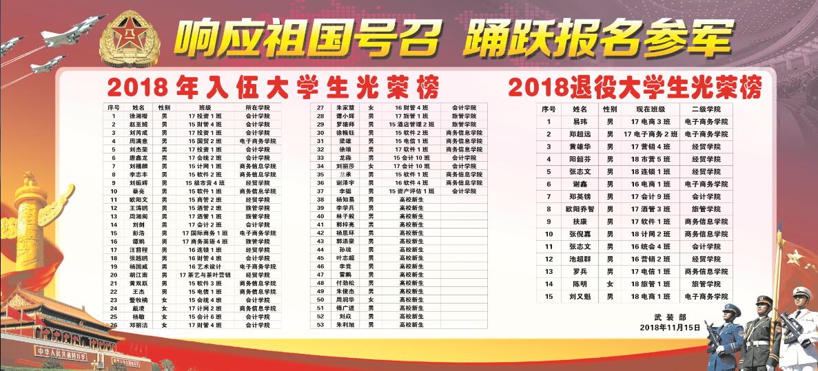 2018退役及入伍大学生光荣榜