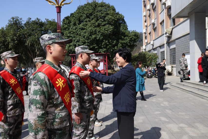 3月13日,学院2024年春季大学生应征入伍欢送仪式在办公楼前举行。副院长禹明华宣读了21名入伍学生名单,院长李定珍为应征入伍学生佩带红花和绶带。