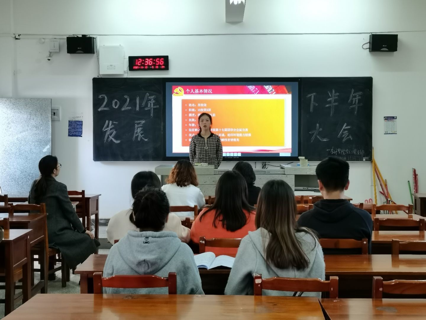 11月9日12:30,会计学院学工二党支部2021年下半年新党员发展大会在二教310举行,本次大会由学生党员谢华鑫同志主持,全体党员参与本次大会。