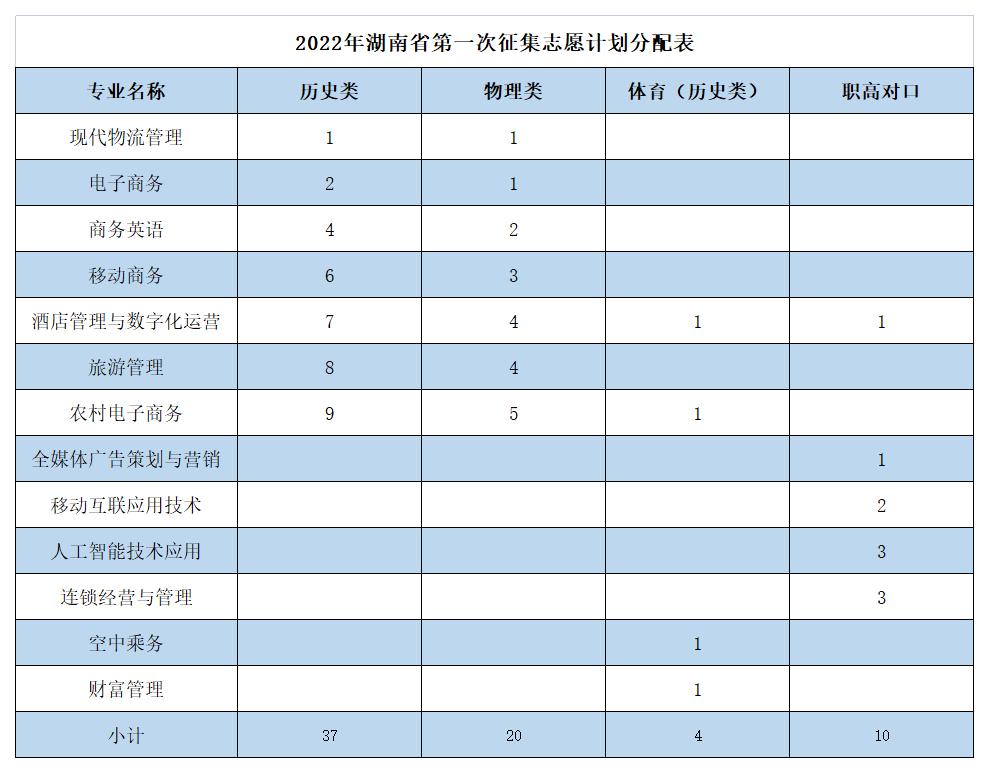 2022年我校湖南省第一次征集志愿计划分配表