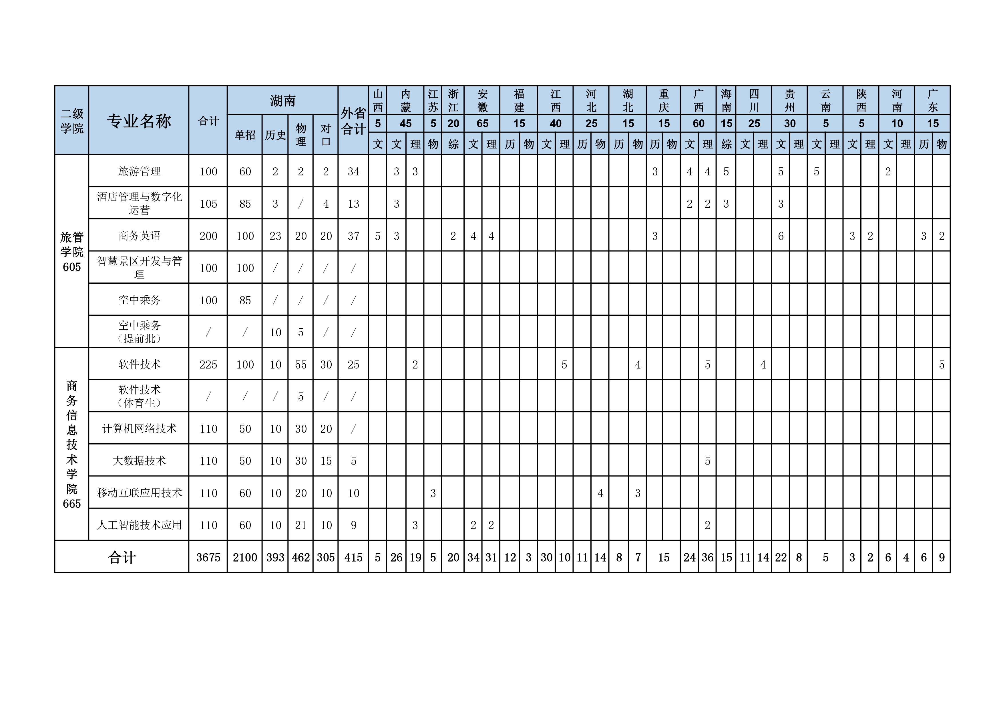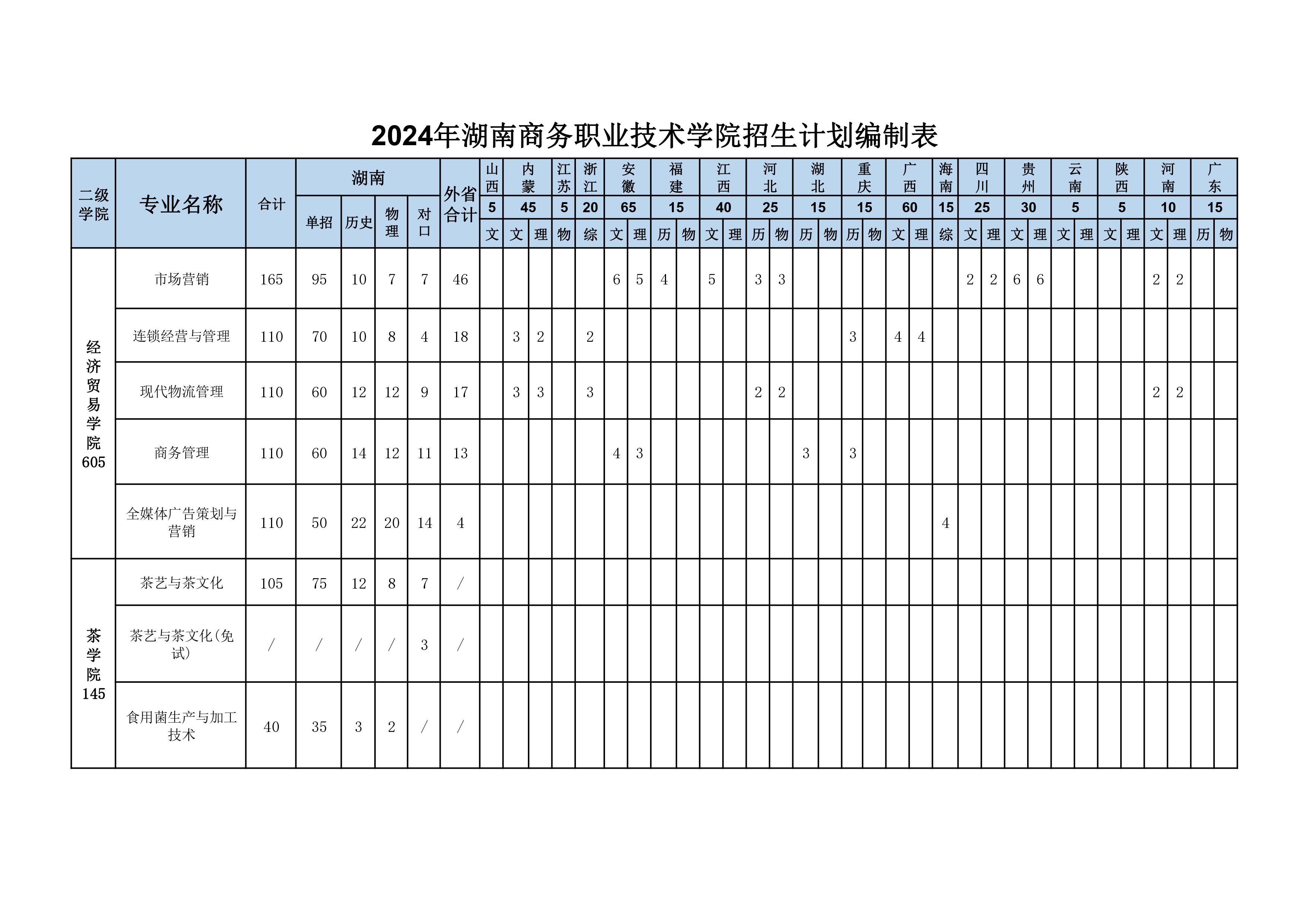 2024年湖南商务职业技术学院招生计划编制表